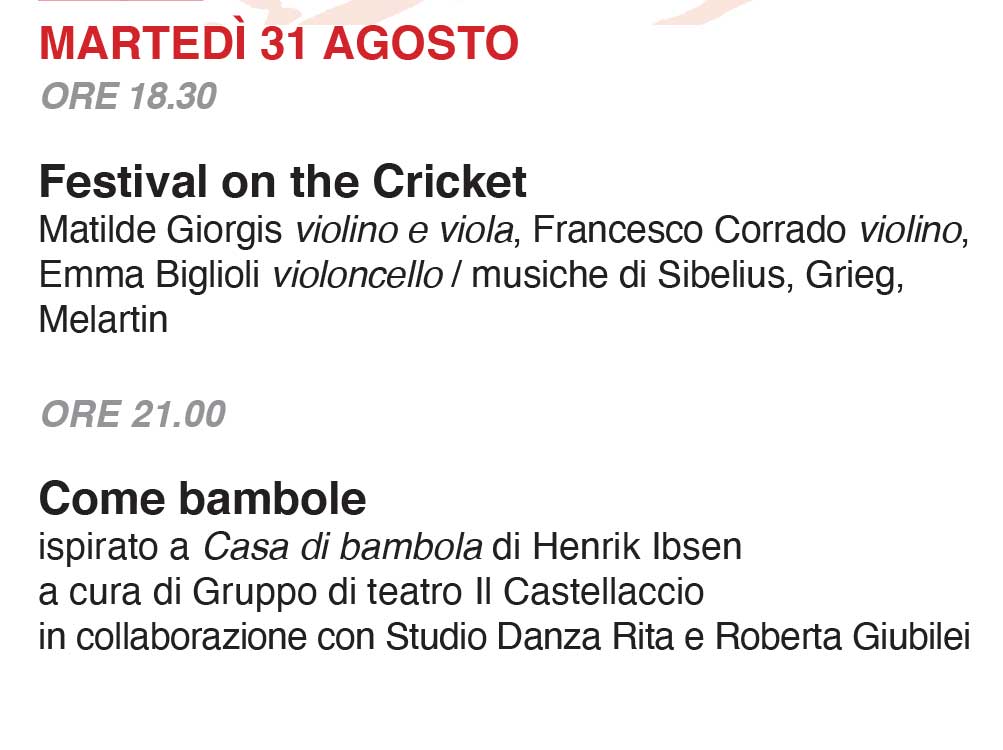 Comunichiamo che causa maltempo i due eventi collaterali previsti per il 31 agosto cambiano location.